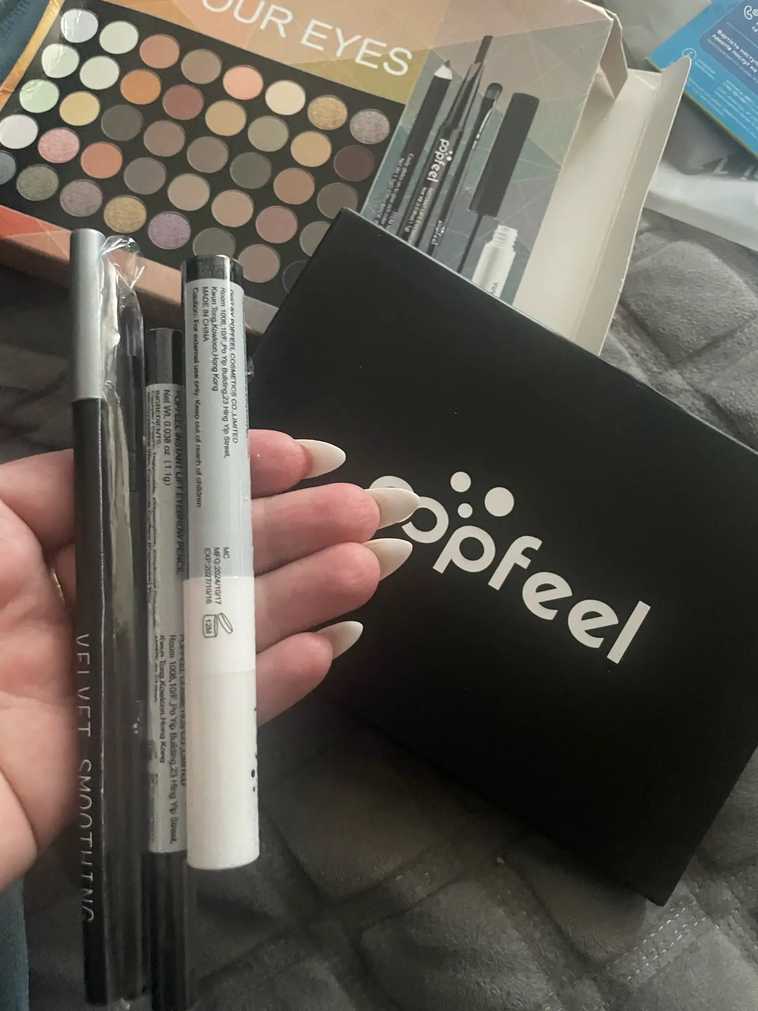 La commande est arrivée rapidement, tout était intact et de bonne qualité. L'ensemble comprend également un crayon à sourcils avec un pinceau, du mascara, un crayon à paupières et un pinceau. J'aime vraiment beaucoup. Merci au vendeur